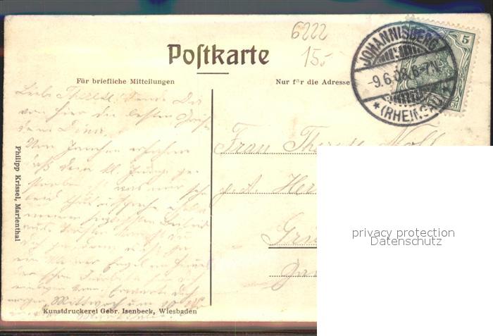 72096428 alte Postkarte Johannisberg Rheingau Marienthal von Sueden postalisch gelaufen Erhaltung siehe scans KatCode: 11110006439004