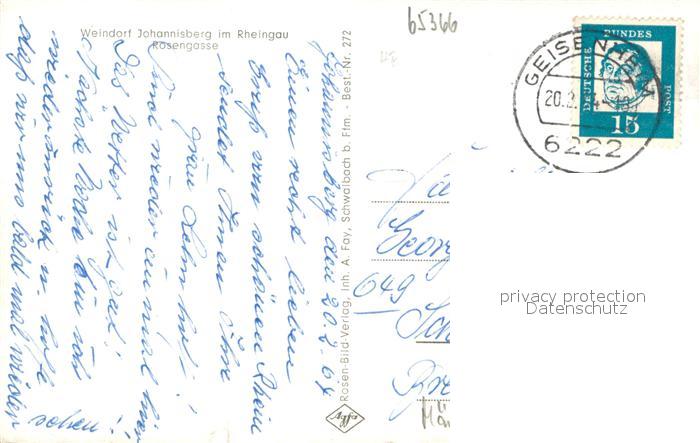 33659220 alte Postkarte Johannisberg Rheingau Rosengasse postalisch gelaufen Erhaltung siehe scans [WerneD78] KatCode: 11110006439004
