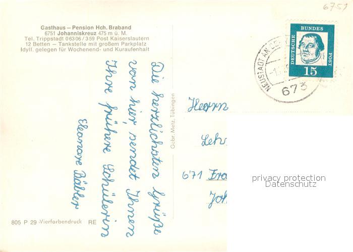 73673049 alte Postkarte Johanniskreuz Johanniskapelle Johanniskreuz Eschkopfturm Schwarzbachtalweiher Burgalbbrunnen postalisch gelaufen Erhaltung siehe scans [WerneD78] KatCode: 11110007335047