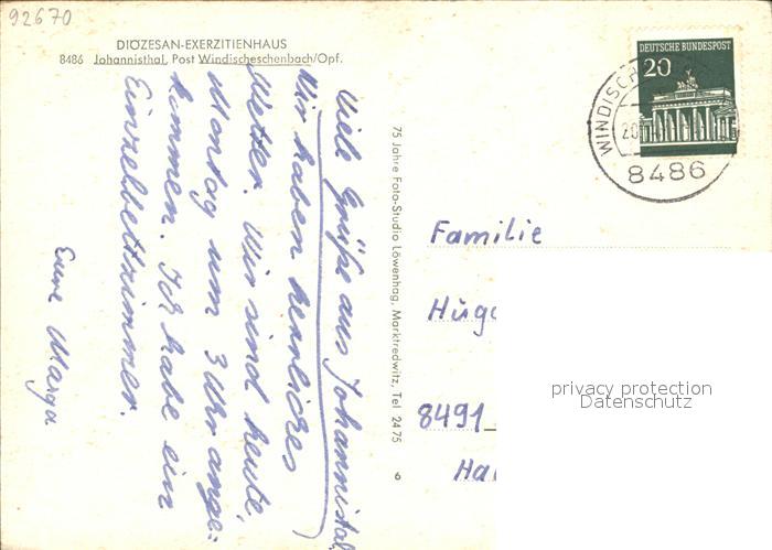 72036452 alte Postkarte Johannisthal Windischeschenbach Dioezesan Exerzitienhaus postalisch gelaufen Erhaltung siehe scans KatCode: 11110009374168