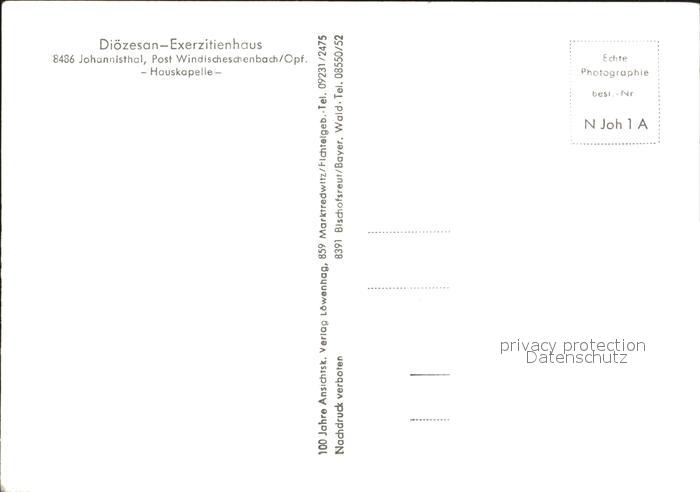 72181078 Johannisthal Windischeschenbach Dioezesan Exerzitienhaus Hauskapelle postalisch nicht gelaufen Erhaltung siehe scans KatCode: 11110009374168