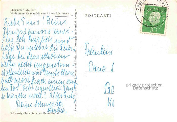 74155082 alte Postkarte JOHANNSEN A. Kuenstlerkarte Husum Husumer Schiffer postalisch gelaufen Erhaltung siehe scans [SanaeD93] KatCode: 22240000003200
