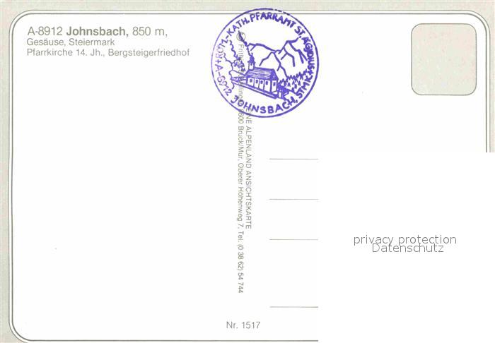 72902725 Johnsbach Steiermark Pfarrkirche Bergsteigerfriedhof Gesaeuse postalisch nicht gelaufen Erhaltung siehe scans [AndreD76] KatCode: 11390222061219