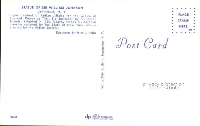 72408940 Johnstown New York Statue of Sir William Johnson postalisch nicht gelaufen Erhaltung siehe scans KatCode: 14140340000000