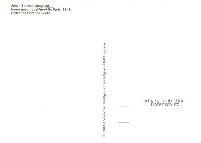 74068963 JONGKIND Johan-Barthold Kuenstlerkarte Quai Henri IV Paris Florence Gould Dampfer postalisch nicht gelaufen Reprokarte Erhaltung siehe scans [SanaeD93] KatCode: 22240000003200
