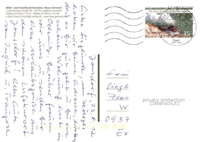 73660956 alte Postkarte Jonsdorf Bibel- und Familienferienstaette Haus Gertrud postalisch gelaufen Erhaltung siehe scans [FriedD77] KatCode: 11110014286180