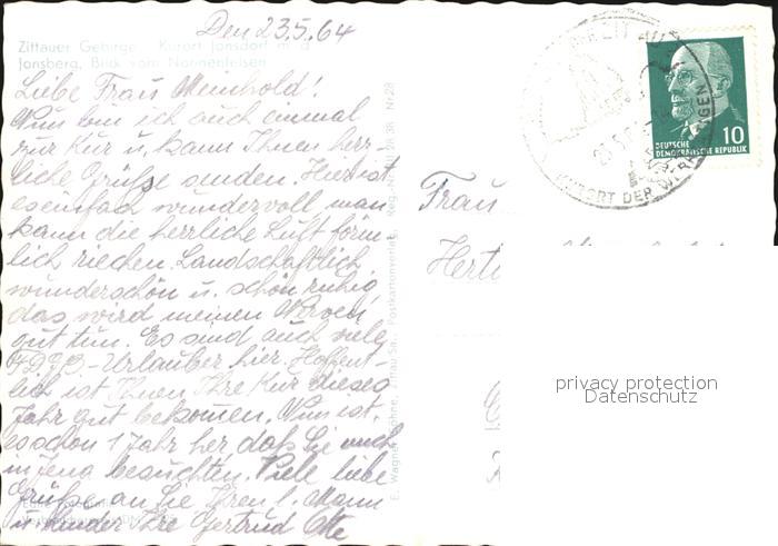 72409411 alte Postkarte Jonsdorf Blick vom Nonnenfelsen postalisch gelaufen Erhaltung siehe scans KatCode: 11110014286180