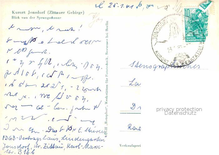 72641093 alte Postkarte Jonsdorf Blick von der Sprungschanze postalisch gelaufen Erhaltung siehe scans [WerneD78] KatCode: 11110014286180