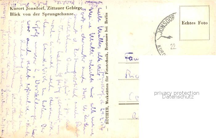 73045444 alte Postkarte Jonsdorf Blick von der Sprungschanze postalisch gelaufen Erhaltung siehe scans [PaolaD17] KatCode: 11110014286180