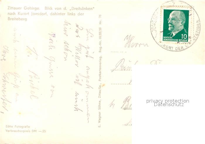 72917523 alte Postkarte Jonsdorf Breiteberg postalisch gelaufen Erhaltung siehe scans [PaolaD17] KatCode: 11110014286180