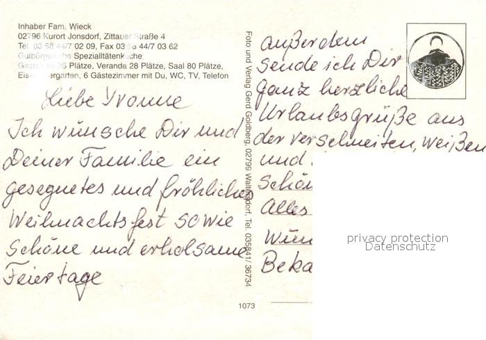 73660419 Jonsdorf Gasthof Pension Weisser Stein Restaurant Landschaftspanorama Zittauer Gebirge postalisch nicht gelaufen Erhaltung siehe scans [FriedD77] KatCode: 11110014286180