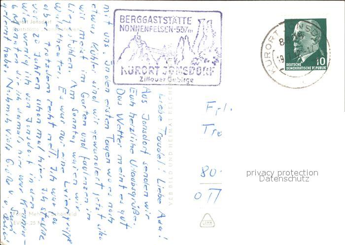 72438680 alte Postkarte Jonsdorf Gaststaette Nonnenfelsen postalisch gelaufen Erhaltung siehe scans KatCode: 11110014286180