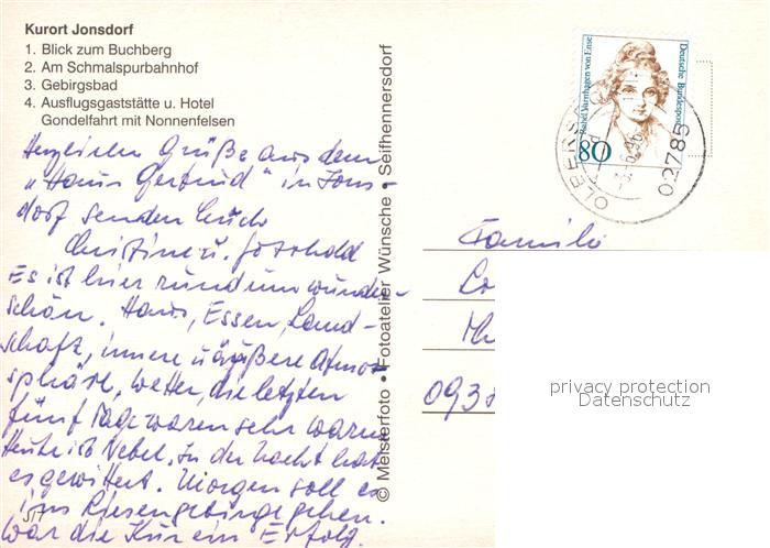 72976117 alte Postkarte Jonsdorf Gebirgsbad Buchberg Schmalspurbahn Hotel Gondelfahrt mit Nonnenfelsen postalisch gelaufen Erhaltung siehe scans [LiesaD40] KatCode: 11110014286180
