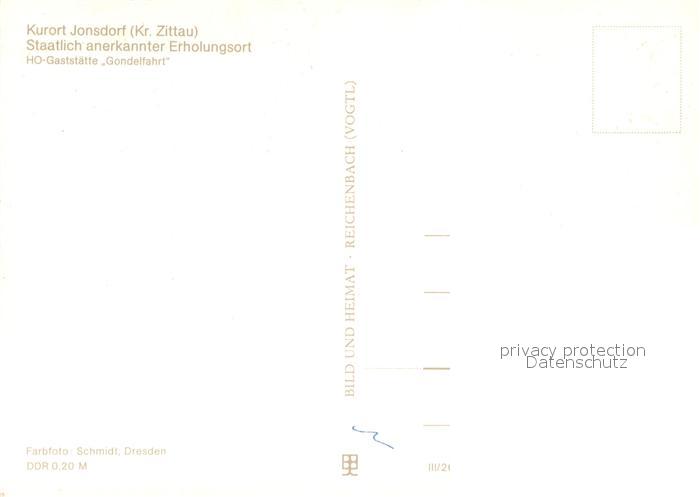 73741950 Jonsdorf HO Gaststaette Gondelfahrt postalisch nicht gelaufen Erhaltung siehe scans [FriedD77] KatCode: 11110014286180