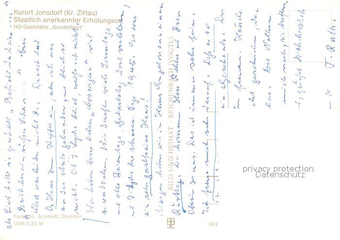 73660320 Jonsdorf HO Gaststaette Gondelfahrt postalisch nicht gelaufen Erhaltung siehe scans [FriedD77] KatCode: 11110014286180
