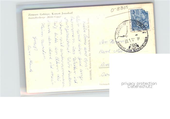 72534007 alte Postkarte Jonsdorf Jugendherberge Hilde Coppi Fliegeraufnahme postalisch gelaufen Erhaltung siehe scans [WerneD78 kt116box] KatCode: 11110014286180