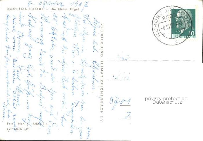 72427851 alte Postkarte Jonsdorf Kleien Orgel postalisch gelaufen Erhaltung siehe scans KatCode: 11110014286180