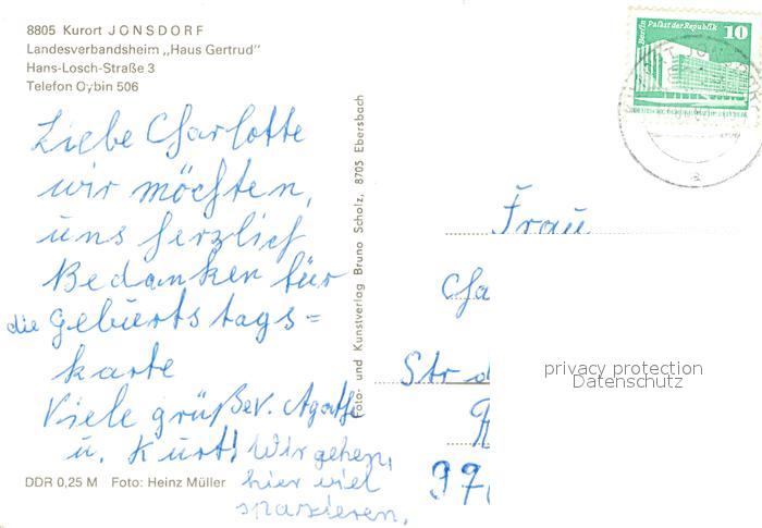 73608721 alte Postkarte Jonsdorf Landesverbandsheim Haus Gertrud Zimmer Gaststube postalisch gelaufen Erhaltung siehe scans [WerneD78] KatCode: 11110014286180