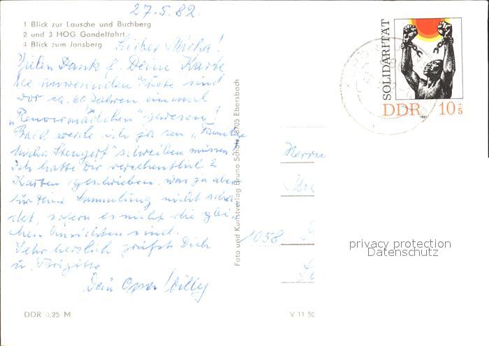 72025638 alte Postkarte Jonsdorf Lausche Buchberg HOG Gondelfahrt postalisch gelaufen Erhaltung siehe scans KatCode: 11110014286180