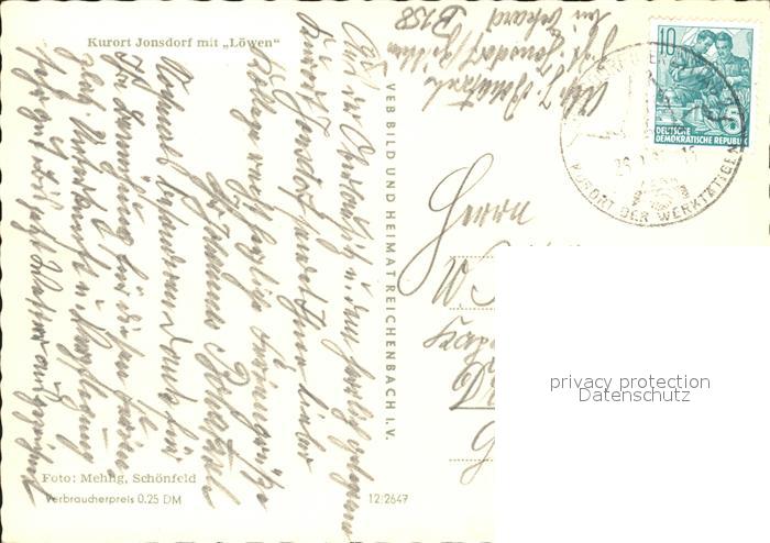 72371805 alte Postkarte Jonsdorf Loewen postalisch gelaufen Erhaltung siehe scans KatCode: 11110014286180