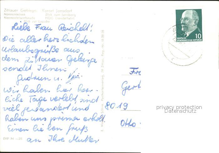 72442564 alte Postkarte Jonsdorf Nonnenfelsen HOG Gondelfahrt Lausche postalisch gelaufen Erhaltung siehe scans KatCode: 11110014286180
