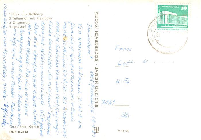 73924665 alte Postkarte Jonsdorf Saechsische Schweiz Blick zum Buchberg Teilansicht mit Kleinbahn Ortsansicht Jonashof postalisch gelaufen Erhaltung siehe scans [FriedD77] KatCode: 11110014286180