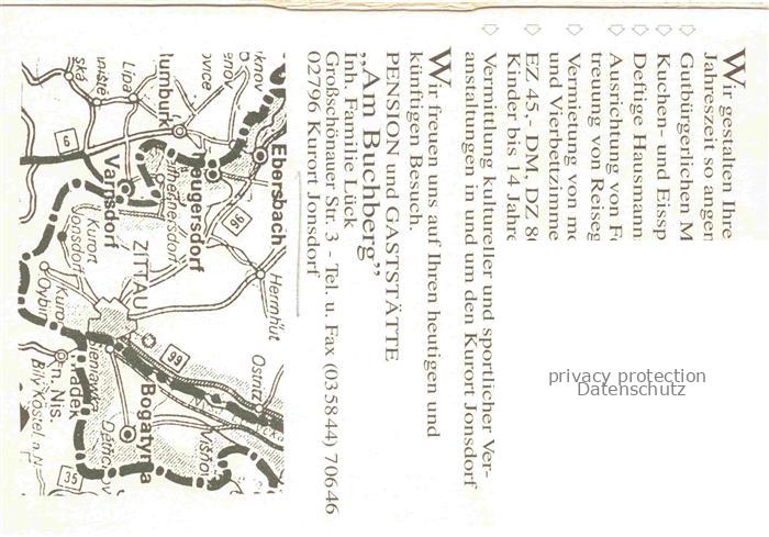74040362 Jonsdorf Saechsische Schweiz Pension Gaststaette Am Buchberg Ausschank Kelchsteine Blick zum Nonnenfelsen postalisch nicht gelaufen Werbekarte (keine Postkarte) Erhaltung siehe scans [FriedD77] KatCode: 11110014286180