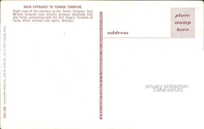 72254528 Joplin Missouri Entrance to Turner Turnpike postalisch nicht gelaufen Erhaltung siehe scans KatCode: 14140270000000
