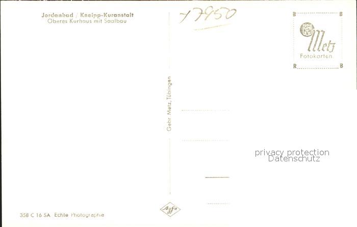 41760114 Jordanbad Kneipp-Kuranastalt Oberes Kurhaus mit Saalbau postalisch nicht gelaufen KatCode: 11110008426021