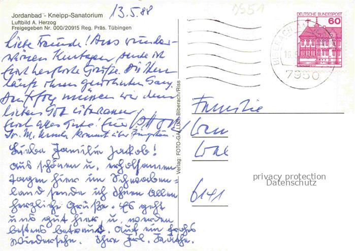 74050795 alte Postkarte Jordanbad Kneipp Sanatorium Fliegeraufnahme postalisch gelaufen Erhaltung siehe scans [WerneD78] KatCode: 11110008426021