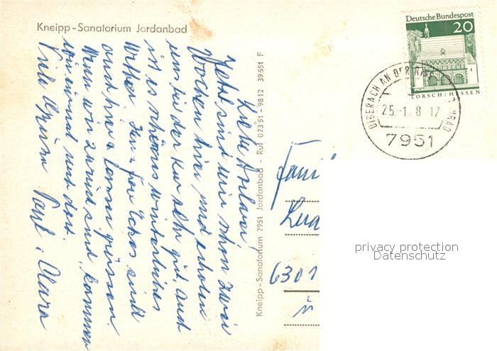 73000822 alte Postkarte Jordanbad Kneipp Sanatorium postalisch gelaufen Erhaltung siehe scans [KathaD81] KatCode: 11110008426021
