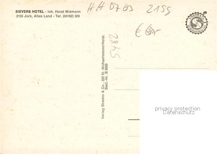 73666199 Jork Sievers Hotel postalisch nicht gelaufen Erhaltung siehe scans [LiesaD40] KatCode: 11110003359028
