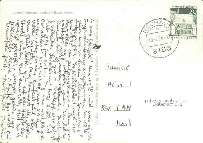 72226849 alte Postkarte Josefstal Jugendherberge postalisch gelaufen Erhaltung siehe scans KatCode: 11110009182131