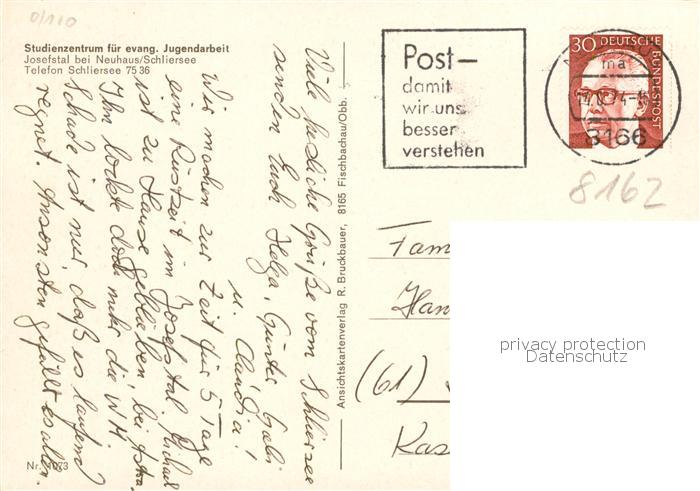 73868376 alte Postkarte Josefstal Neuhaus Schliersee Studienzentrum fuer ev Jugendarbeit postalisch gelaufen Erhaltung siehe scans [WerneD78] KatCode: 11110009182131