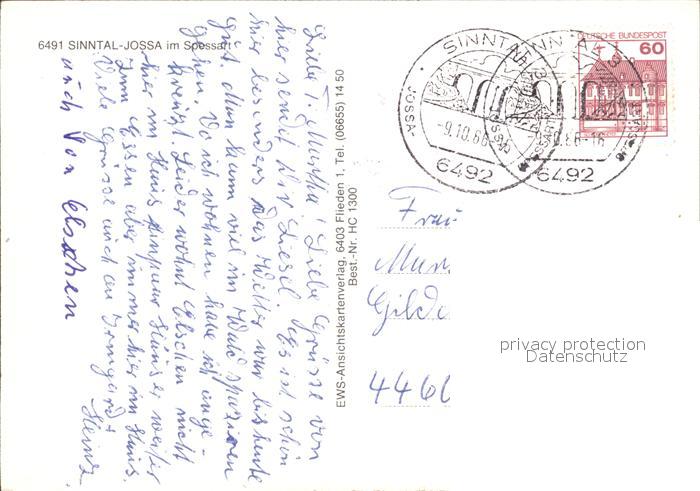 72135694 alte Postkarte Jossa Schluechtern Sinntal Gasthaus Jossgrund postalisch gelaufen Erhaltung siehe scans KatCode: 11110006435027