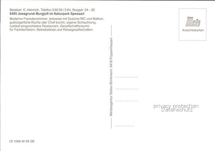 72551230 Jossgrund Gasthaus Burgfrieden Pension postalisch nicht gelaufen Erhaltung siehe scans [LiesaD40] KatCode: 11110006435016