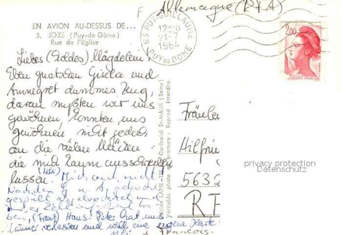 13251994 carte postale Joze Fliegeraufnahme Rue de Eglise postalisch gelaufen Erhaltung siehe scans [NatalD47] KatCode: 11170063563180