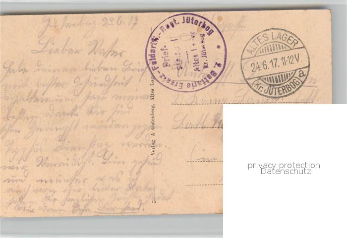 43497092 alte Postkarte J?terbog Artillerie-Depot Wohnhaus postalisch gelaufen Feldpost – Stempel Erhaltung siehe scans [LiesaD40] KatCode: