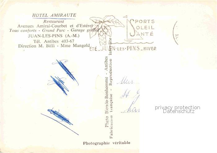 12839042 carte postale Juan-les-Pins Antibes 06 Hotel Amiraute Restaurant Park postalisch gelaufen Erhaltung siehe scans [KathaD81] KatCode: 11170006106004