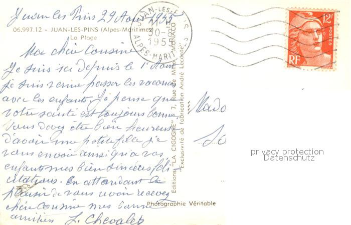 13586225 Juan-les-Pins Antibes 06 La Plage postalisch gelaufen Erhaltung siehe scans [WerneD78] carte postale Wern Katcode 11170006106004