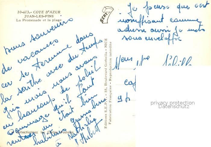 13573037 carte postale Juan-les-Pins Antibes 06 La Promenade et la plage postalisch gelaufen Erhaltung siehe scans [WerneD78] KatCode: 11170006106004