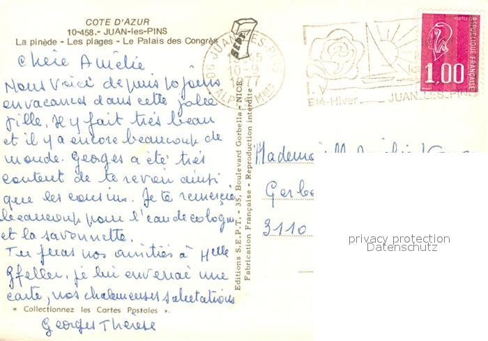 13318475 carte postale Juan-les-Pins Antibes 06 Pinede Plages Palais des Congres postalisch gelaufen Erhaltung siehe scans [PaolaD17] KatCode: 11170006106004