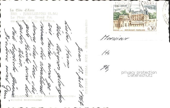 12282142 carte postale Juan-les-Pins Antibes 06 Strand Grand Pin postalisch gelaufen Erhaltung siehe scans KatCode: 11170006106004