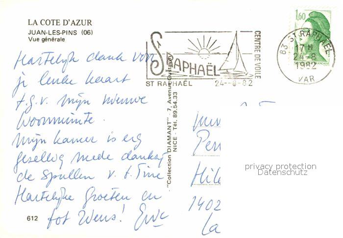 12665013 carte postale Juan-les-Pins Antibes 06 Vue generale Plage postalisch gelaufen Erhaltung siehe scans [FriedD77] KatCode: 11170006106004