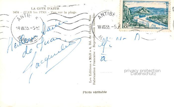 13535631 carte postale Juan-les-Pins Antibes 06 Vue sur la plage postalisch gelaufen Erhaltung siehe scans [FriedD77] KatCode: 11170006106004