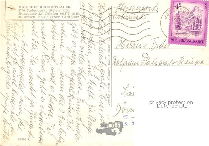 73588158 alte Postkarte Judenburg Steiermark Gasthof Reichsthaler Gastraum Fremdenzimmer Ortsansicht mit Kirche postalisch gelaufen Erhaltung siehe scans [FriedD77] KatCode: 11390226060806