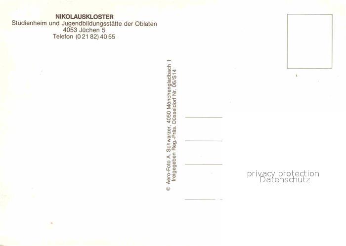 72837161 Juechen Nikolauskloster Studienheim Jugendbildungsstaette der Oblaten Fliegeraufnahme postalisch nicht gelaufen Erhaltung siehe scans [FriedD77] KatCode: 11110005162012