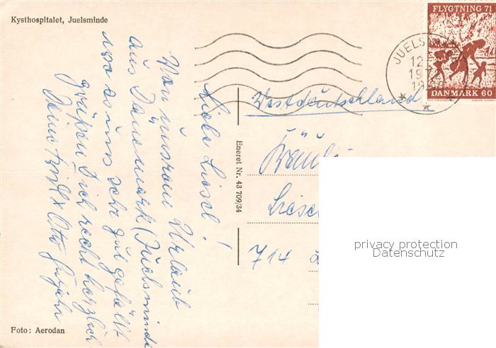73769759 Juelsminde DK Kysthospitalet postalisch gelaufen Fliegeraufnahme Erhaltung siehe scans [FriedD77] Fliegeraufnahme old postcard Frie Katcode 11100
