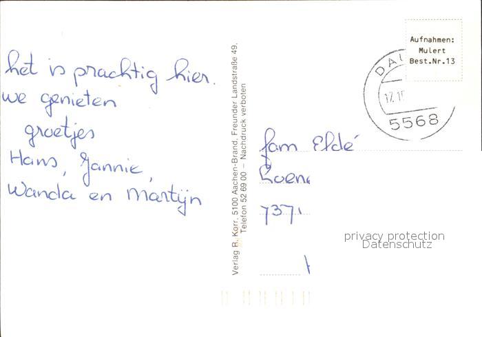 72128566 alte Postkarte Juenkerath Feriendorfer Schuller Esch Feusdorf Goennersdorf postalisch gelaufen Erhaltung siehe scans KatCode: 11110007233035