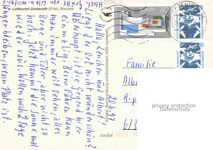 74055221 alte Postkarte Juenkerath Stausee Panorama postalisch gelaufen Erhaltung siehe scans [WerneD78] KatCode: 11110007233035